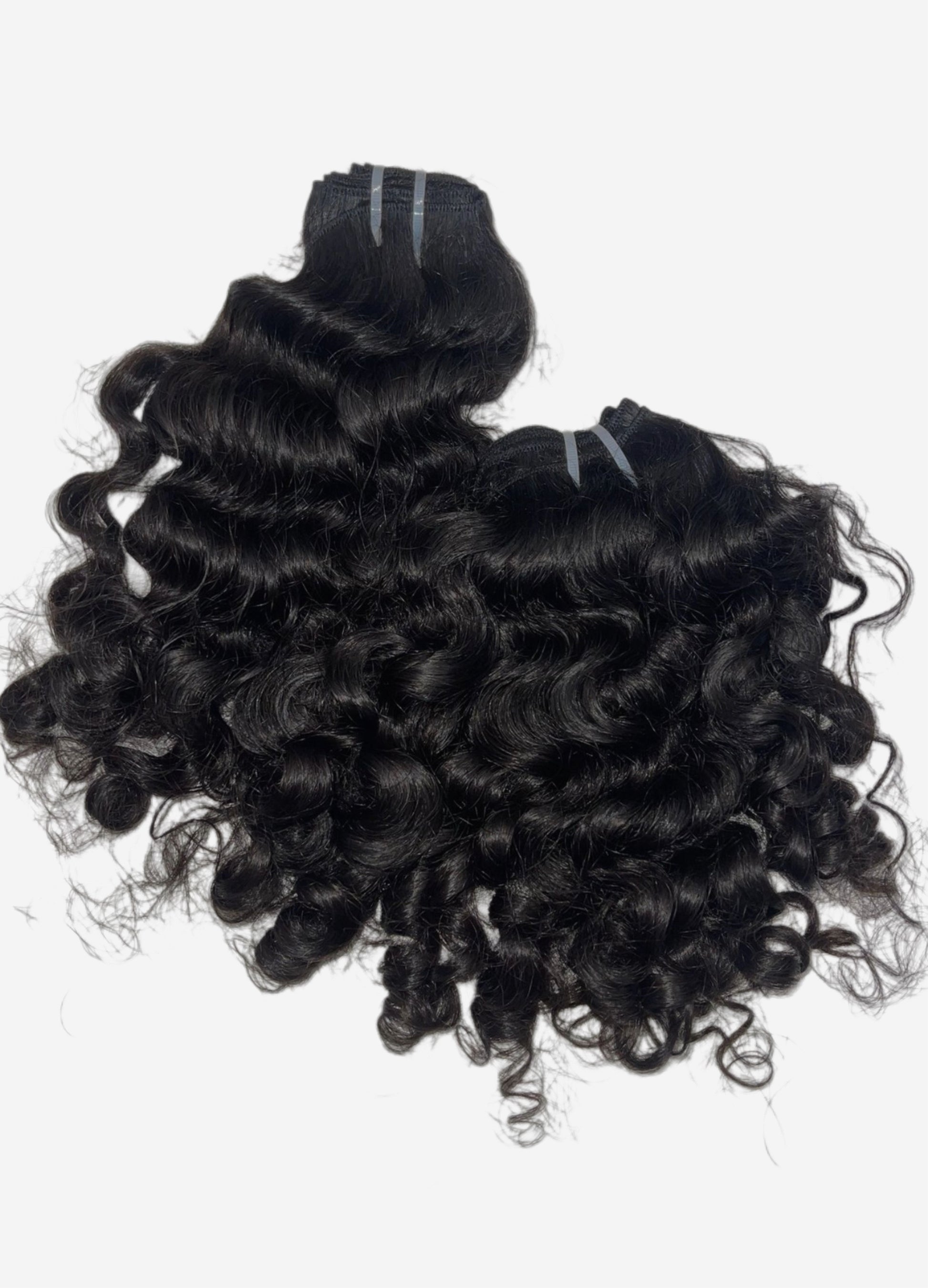 Our Raw Curly bundles feature looser bouncy curls with a natural luster. This texture comes directly from donors, with no steam or chemical processing, making it the purest and most long-lasting hair option. Perfect for a full, voluminous curly look.
