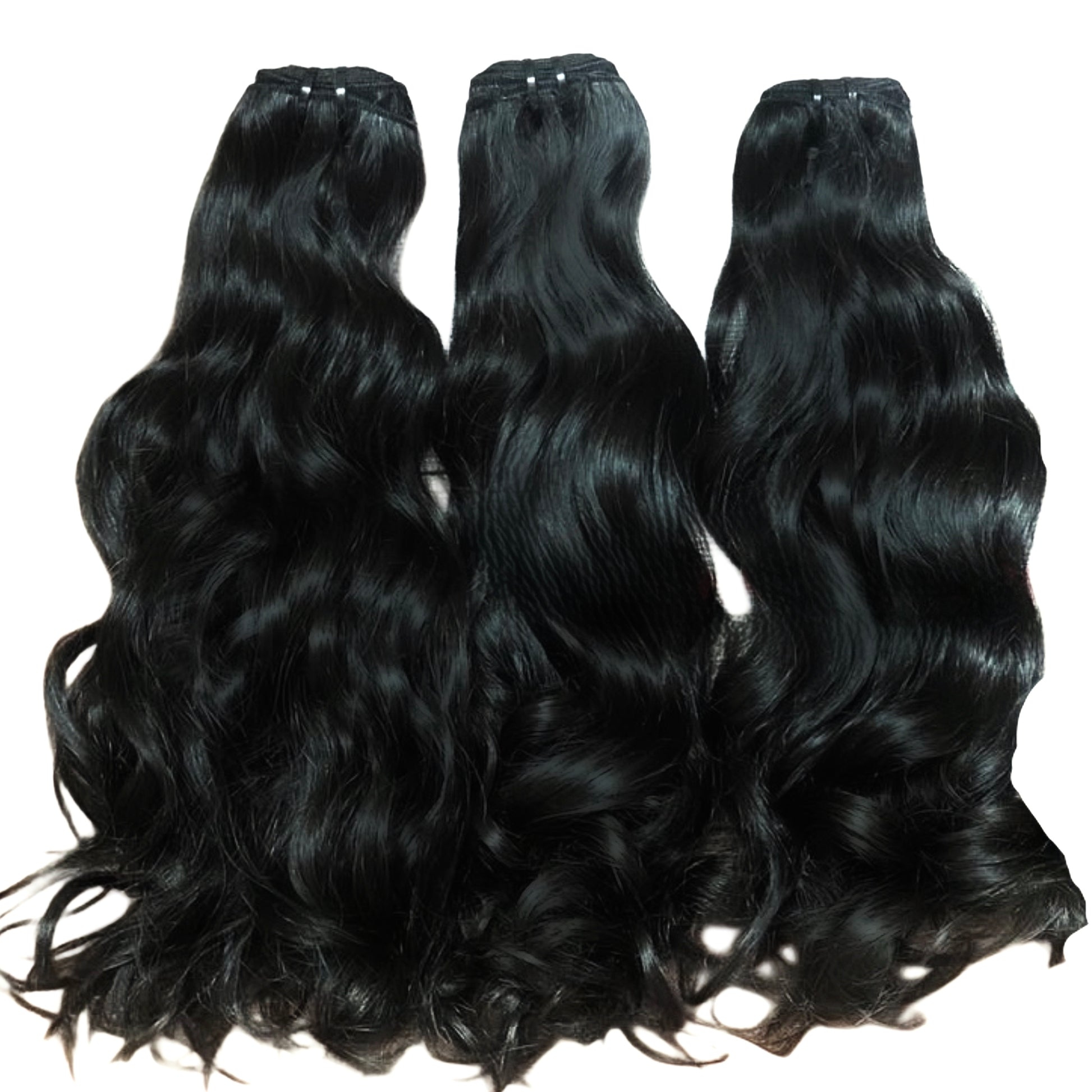Our Deluxé Raw Wavy Bundles are made from 100% raw human hair, sourced from a single donor with cuticles intact. No chemicals, no steam — just the hair’s natural wavy texture.